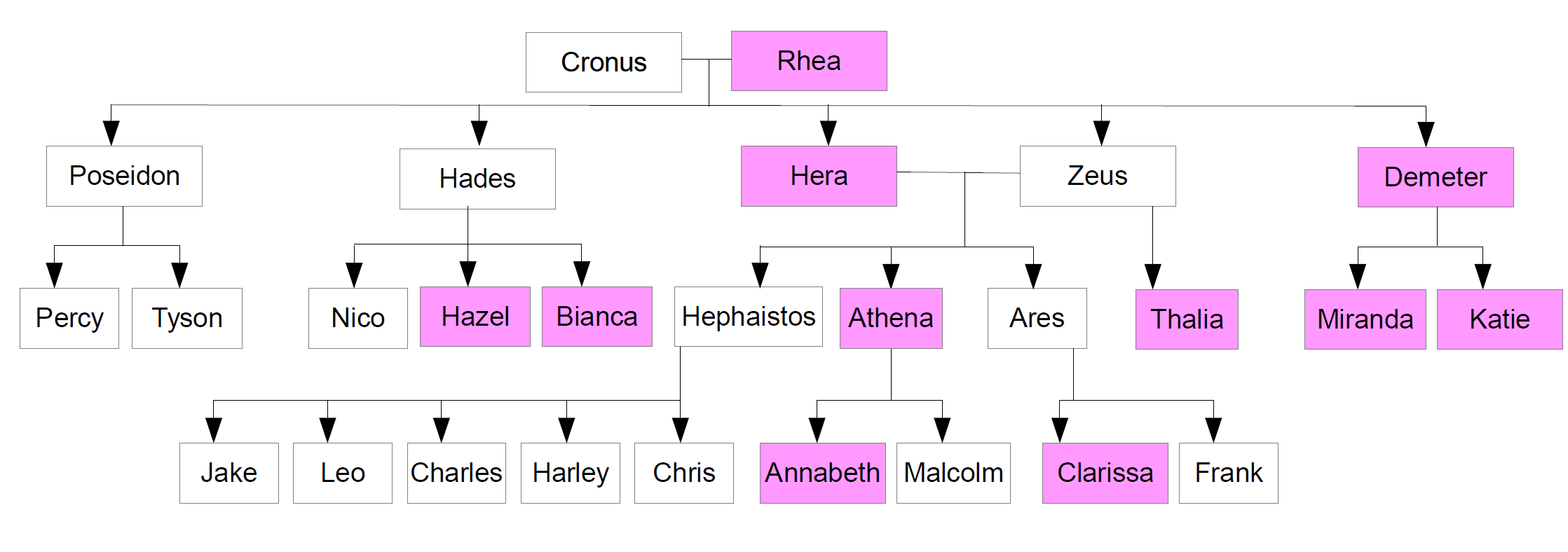 Basierend auf diesen Informationen kann man einen Götterstammbaum für alle Schülerinnen und Schüler des Halbgötter-Camps erstellen, um alle Informationen dieser Miniwelt besser lesbar zu machen.