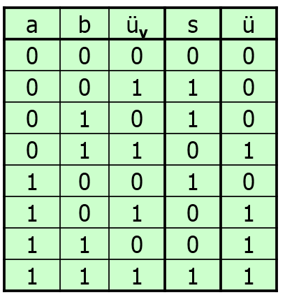 in der Regel die dritte Binärzahl dem Übertrag ü der vorherigen Stelle.