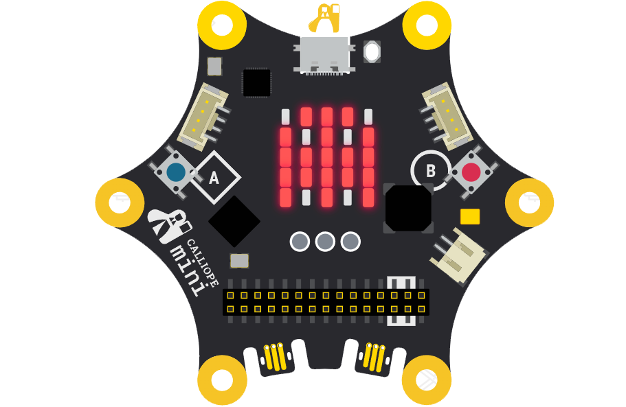 Die LED-Matrix besteht aus einem Feld von 5x5 roten LEDs in der Mitte des Calliope Mini.