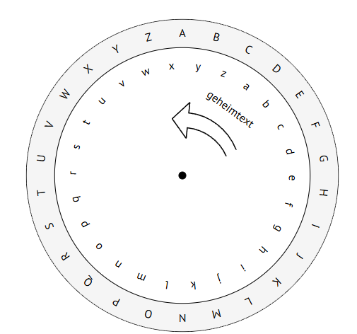 Im äußeren Ring der Scheibe steht der KLARTEXT, im inneren Ring der geheimtext.