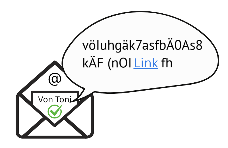 Mika weiß, dass die Mail von Toni kommt, aber der Inhalt klingt dennoch seltsam. Toni versichert Mika auf Nachfrage, dass kein Link in der Mail gewesen sei...