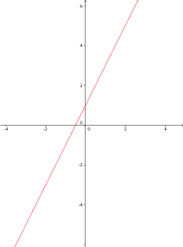 Sind nun zwei Funktionswerte von f bekannt, etwa f(1) = 3 und f(2) = 5, so lässt sich die obige Funktionsvorschrift f(x) = 2x+1 wie folgt bestimmen: